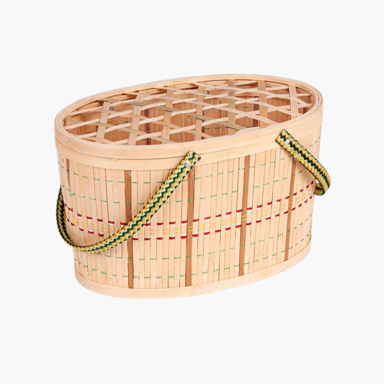 손에 대바구니를 들다—내구성 좋은 천연 대나무 바구니, 가볍고 실용적, 다양한 용도, 친환경 재질, 손잡이 디자인으로 휴대 편리